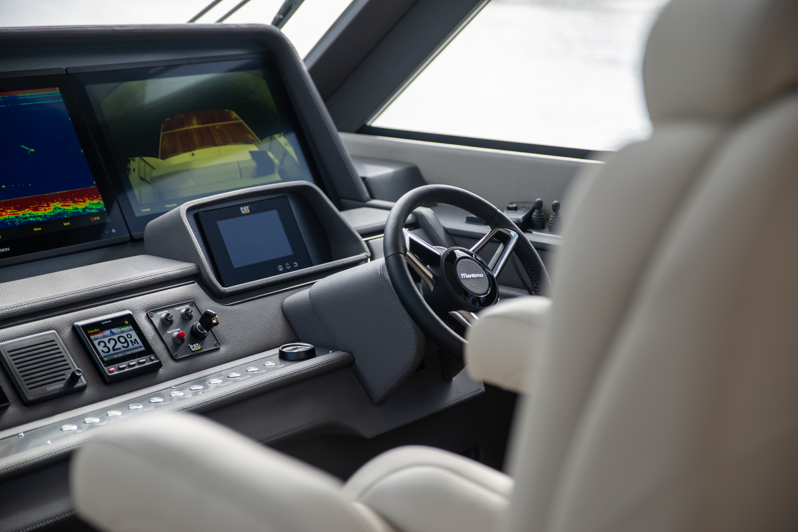 Propelling the M70 is the larger optional Caterpillar C18 engines, their 18.1-litre displacement sees 1150 mhp at the crankshaft at max rpm of 2300, and they weigh in at 1860 kgs. Maritimo’s flexibility on engine choices gives it a broad appeal; the extra weight of these engines may contribute to optimising the VCG for the supple ride.
